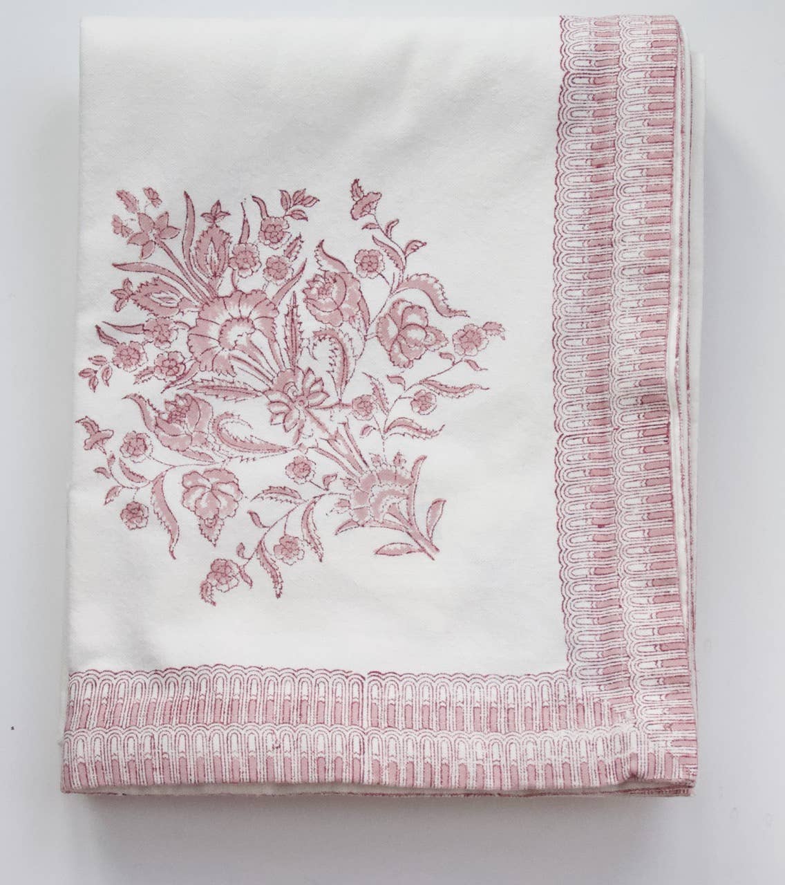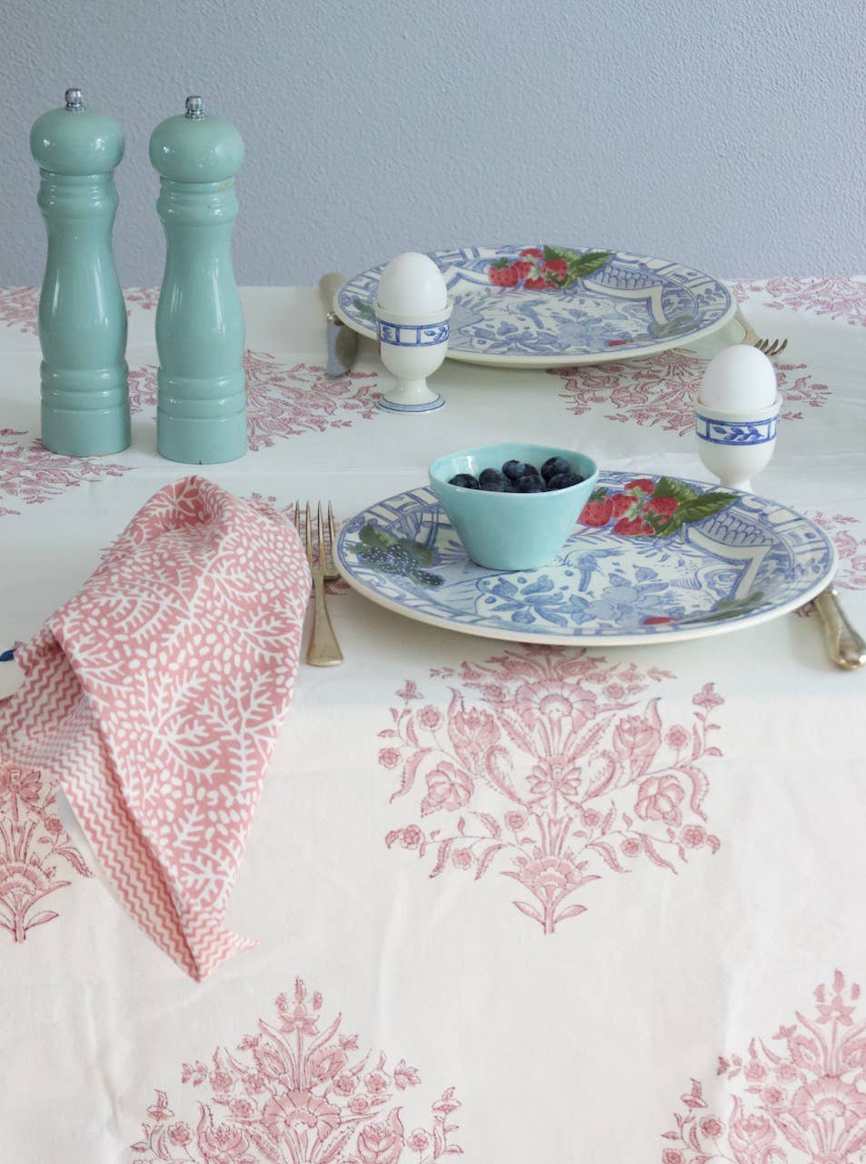 Add style and charm to your dining space with this gorgeous handprinted tablecloth. It’s perfect for everyday use or special occasions. It's made from thick, high-quality 100% cotton, handcrafted with unique blockprint details and has a striped border. Wash at 30°C to maintain its beauty.