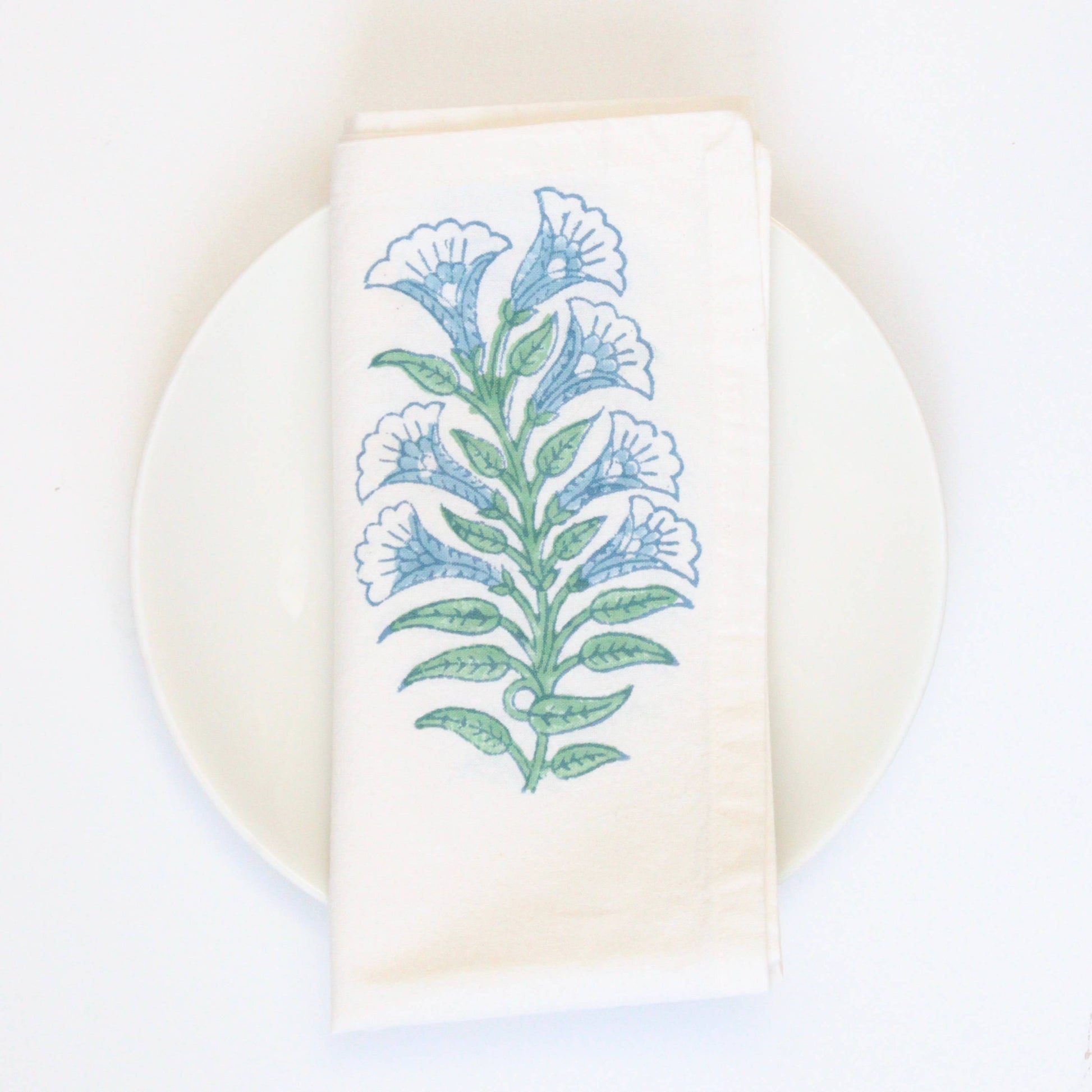Handmade and block printed in soft cotton, 45 x 45 cm, this napkin has a beautiful print and makes everyday or occasional dining feel exquisite! If you look closely you can see the blockprints. Variations are not considered as imperfections, but are the mark of a unique handmade item. Size: 45 x 45 cm Material: 100% cotton. Wash in 30 degrees to maintain its beauty.